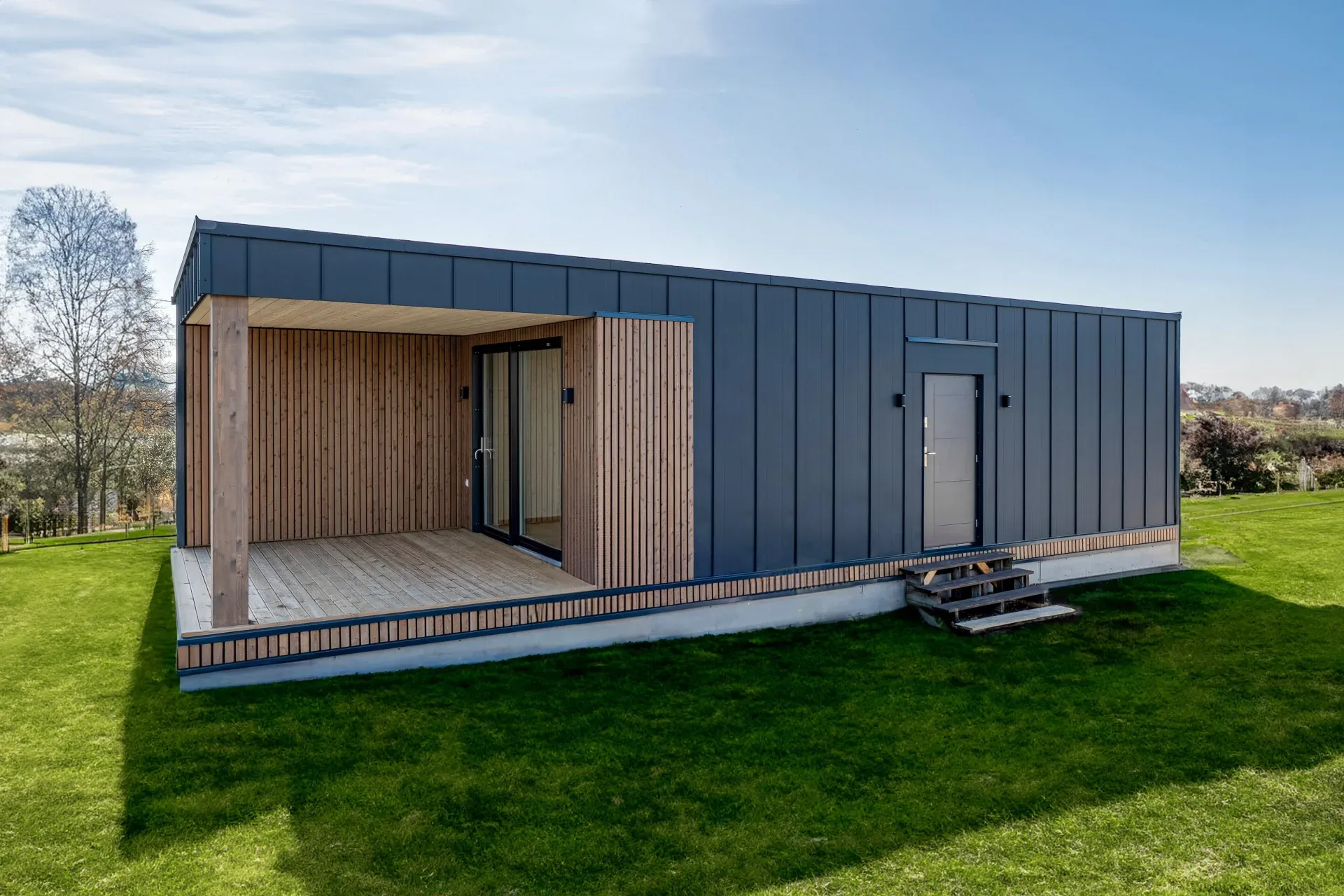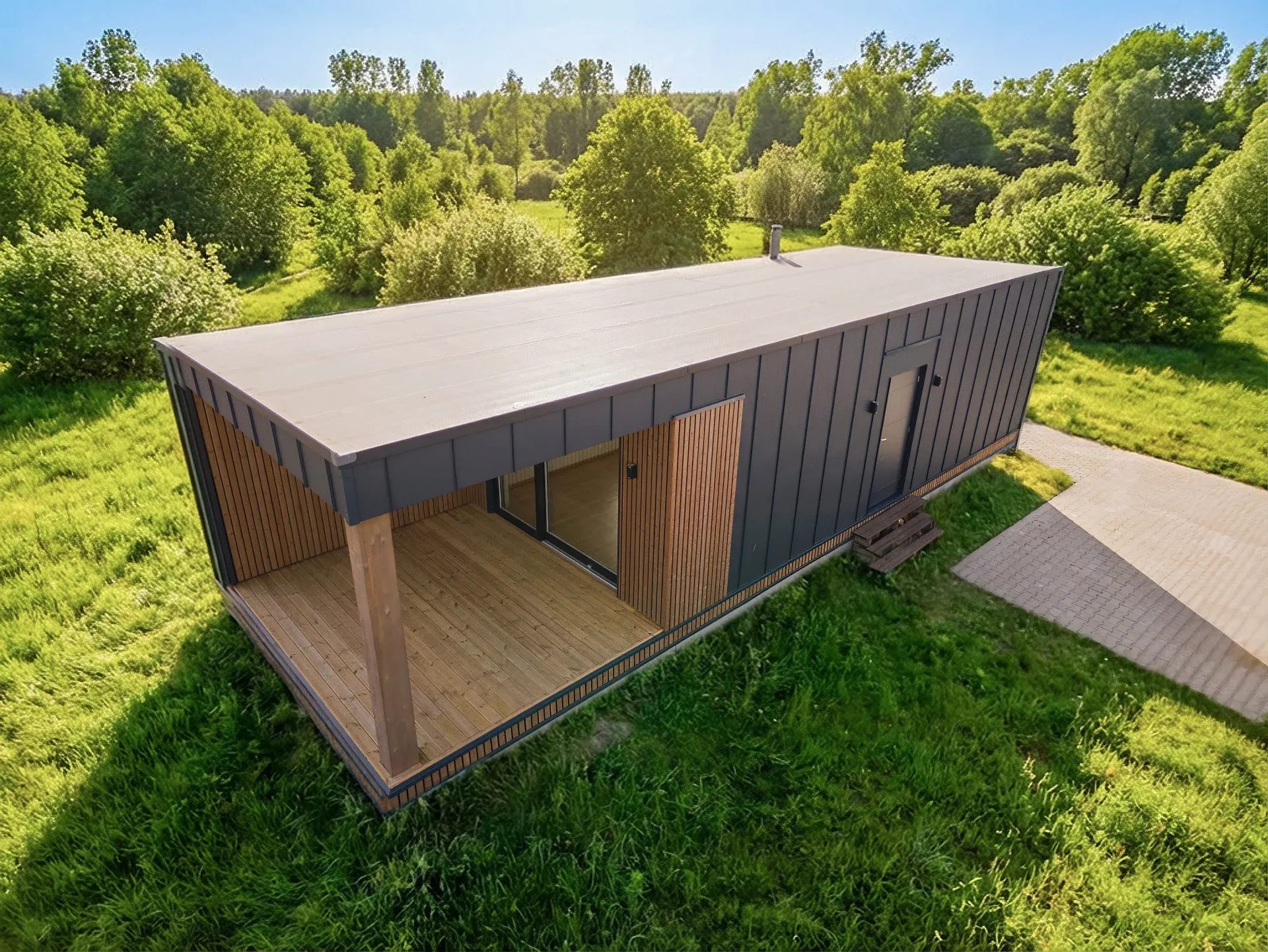Unsere Modulhäuser sind für die sofortige Montage bereit, was die schnelle Verwirklichung des Traums von einem eigenen Erholungsraum ermöglicht.